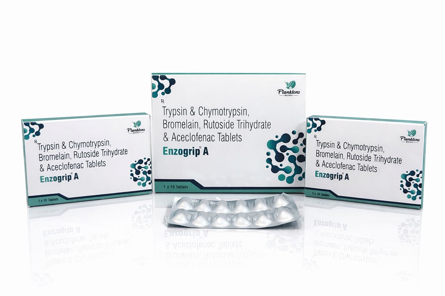 Trypsin-Chymotrypsin (6:1) 50,000 A.U., Bromelain 90 mg, Rutoside Trihydrate 100 mg & Aceclofenac 100 mg Tablets